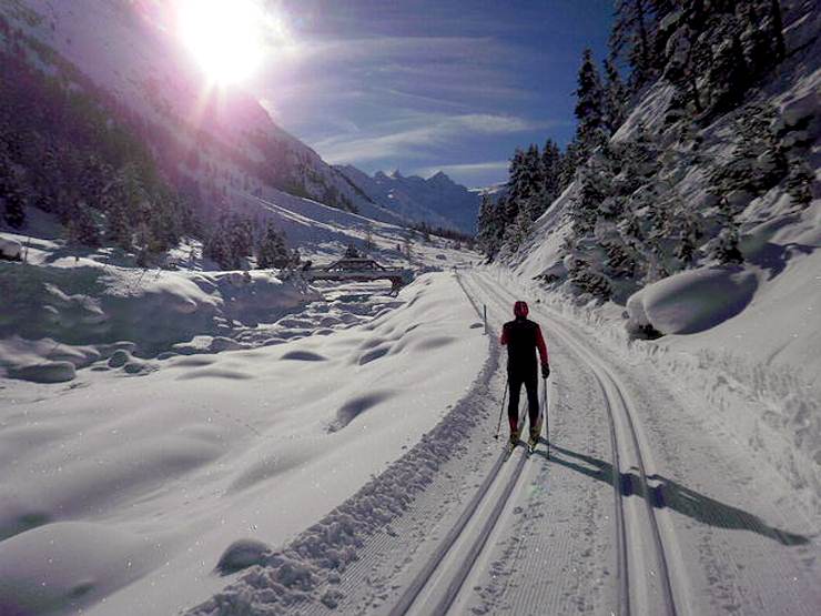Schöne Loipentouren das Tal hinauf auf den Berg zum Gletscher, als Tagesausflug.