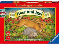 Hase und Igel wurde in der Neuauflage in einer spannenderen Fassung auf den Markt gebracht, aber auch der Klassiker ist nicht ohne. Der Hindergrund dieses Spiels ist das Rennen zwischen Hase und Igel. Die Spieler übernehmen hierbei die Rolle des Hasen und müssen, um zu gewinnen als erstes die Ziellinie zu überqueren. Jeder Spieler hat 98 Karotten und drei Salate, welche für die jeweiligen Züge gezahlt werden müssen.